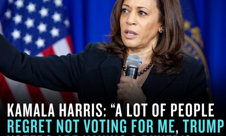 A renewed political clash is unfolding after Vice President Kamala Harris reportedly suggested that some voters regret not supporting her in the last election cycle.