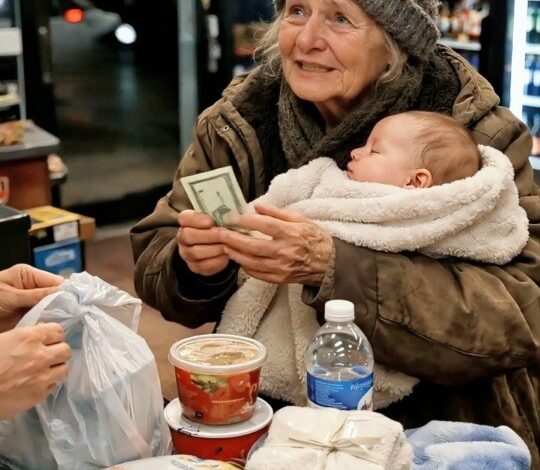 A tiny infant, sleeping peacefully. Her cheeks were flushed from the cold. She was wrapped tightly in a faded gray blanket that had clearly been used many times. The baby didn’t stir, not even when the woman shifted her grip or winced slightly as she walked.