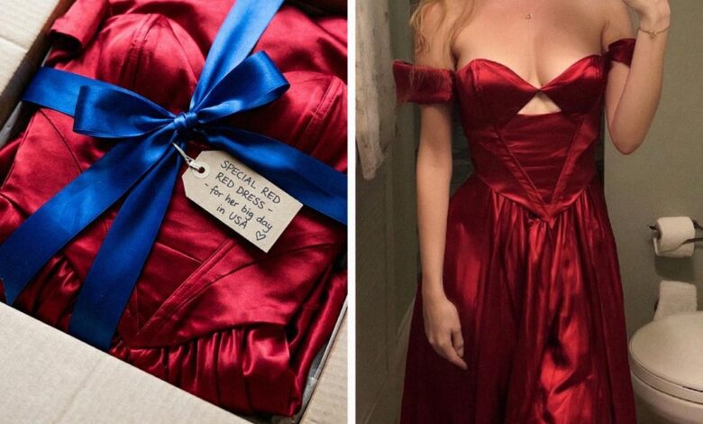 It was a deep, vivid red—almost too bold to look at directly. Silk, smooth and deliberate, with a sweetheart neckline designed not to blend in, but to be seen. It was the kind of dress that made a statement the moment you walked into a room.