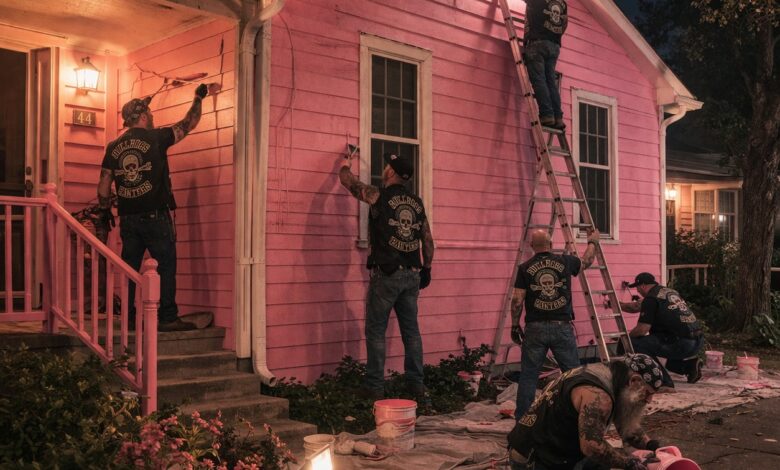 I Woke Up at 4AM to Find Nine Bikers Painting My Late Mothers House Pink but Their Secret Promise Left Me in Tears