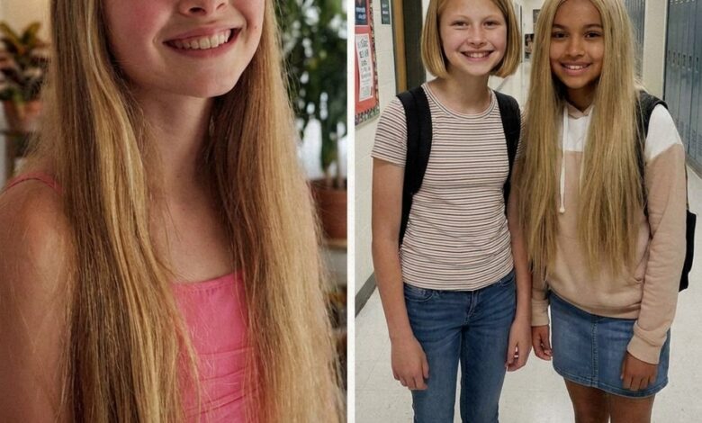 The night before, I had already sensed something was different. I found my 12-year-old daughter, Letty, standing in the bathroom with uneven, freshly cut hair and tears in her eyes. She explained, through shaky breaths, that a girl at school named Millie had been struggling after losing her hair during illness, and some classmates had been unkind. Letty had decided, on her own, to cut her hair so it could be used for a wig. She didn’t know if it would be enough—but she wanted to help. My heart broke and swelled at the same time. Together, we went to a local salon where kind hands helped shape her hair into something she could feel confident wearing again. By morning, she was ready—not just with a new haircut, but with a gift meant to make another child feel less alone.